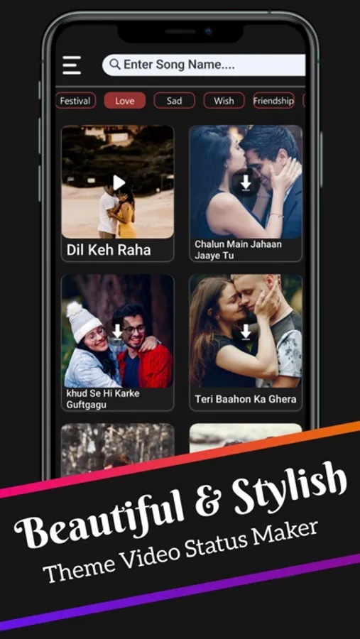 Full Screen Video Status : On public demand, you can make full screen video status maker and half screen video status its depend your selection of photos.