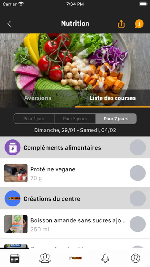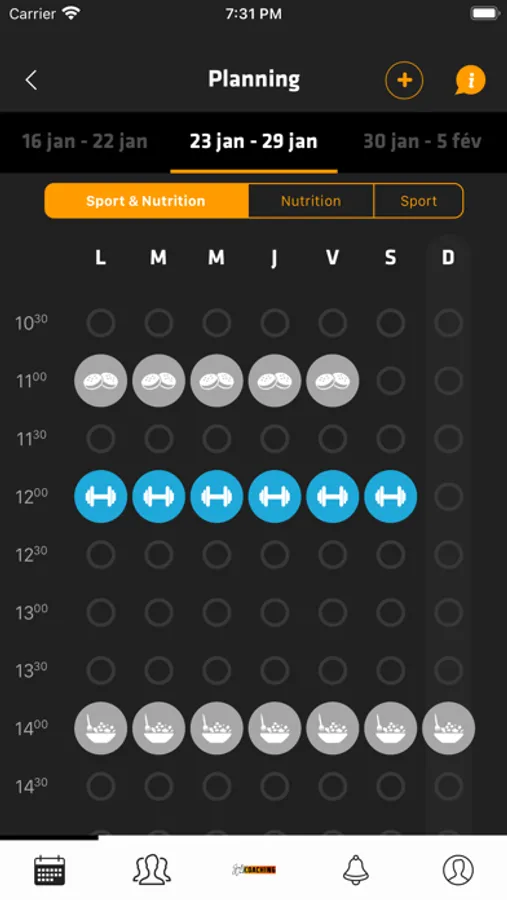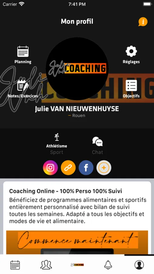 Les fonctionnalités disponibles sont nombreuses : validation et commentaires de vos séances et repas quotidiens, visualisation de vos courbes de mensurations et poids, comptage calorique et macros, liste des aliments autorisés, idées de recettes, vidéos d’entrainements etc.