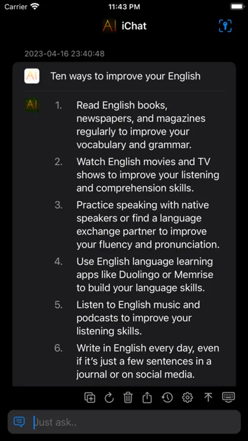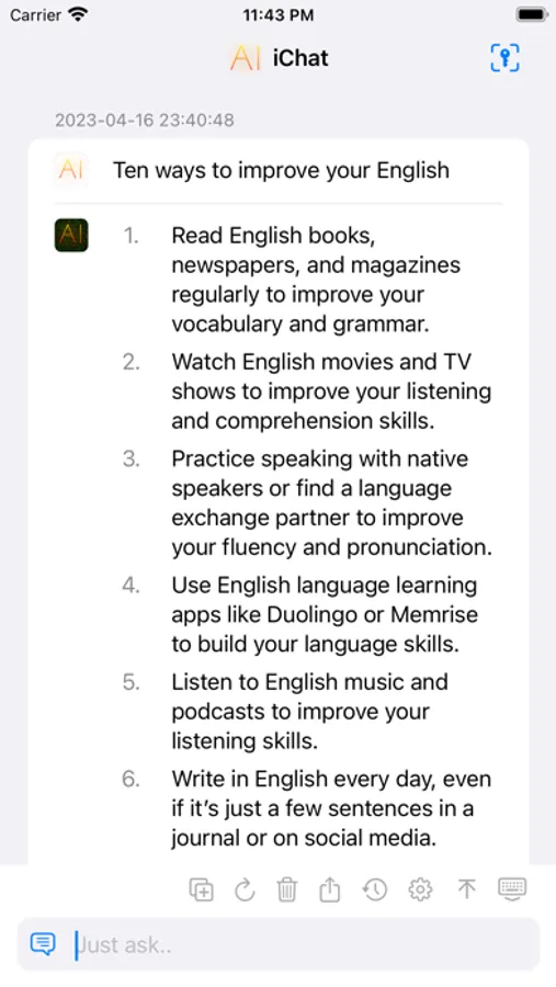 In addition, I can also help you improve your writing skills, provide spell checking and grammar correction, etc. In a word, I can help you a lot. You just need to ask questions.