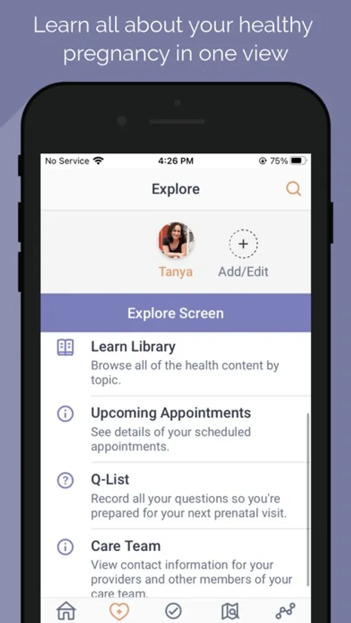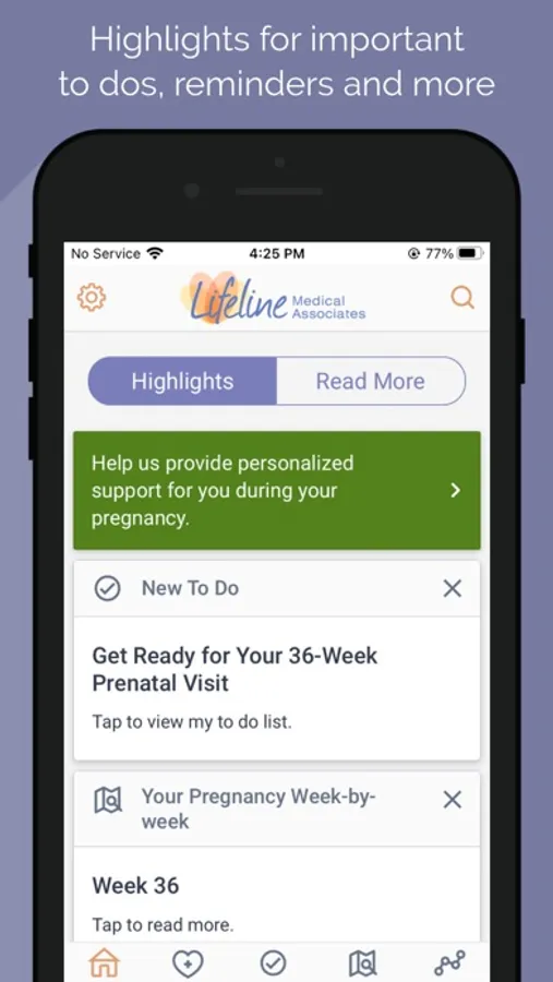 • Get notifications about important information regarding your pregnancy, new messages, upcoming appointments, and to dos.
