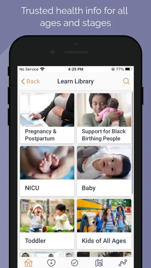 • Learn about health symptoms and issues in the Learn Library and watch videos about your baby’s weekly development.
