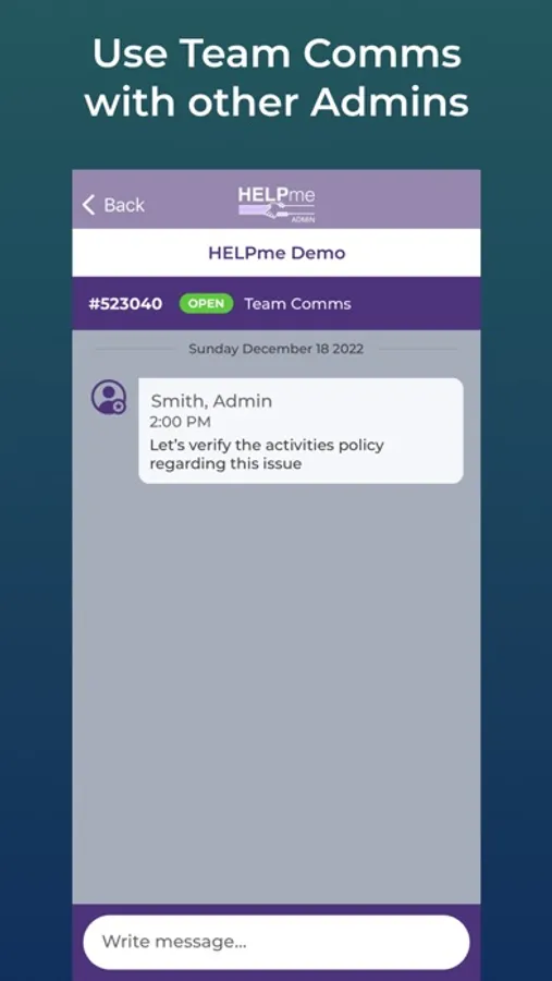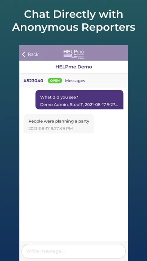 The built-in HELPme Messenger gives administrators handling inquiries direct communication with the people who sent in the reports.
