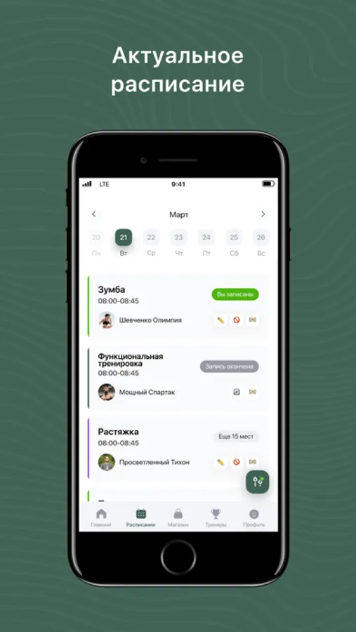 Посмотреть актуальное расписание тренировок;