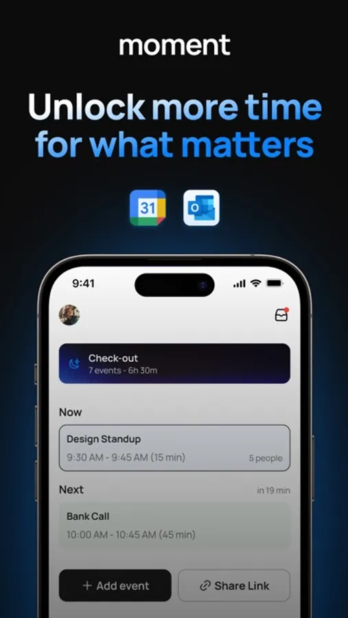 → Save hours with moment, your all-in-one calendar, managing your time: scheduling links, rescheduling, adding events, and summaries of your days