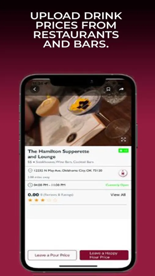-View all reviewed bars or restaurants in your area and see their happy hour specials or pour prices
