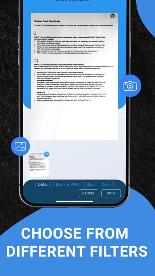 Easy to scan documents, agreements, receipts, IDs, books, and more using your device and turn them into high-quality PDFs, so you can safely store and share them anywhere.