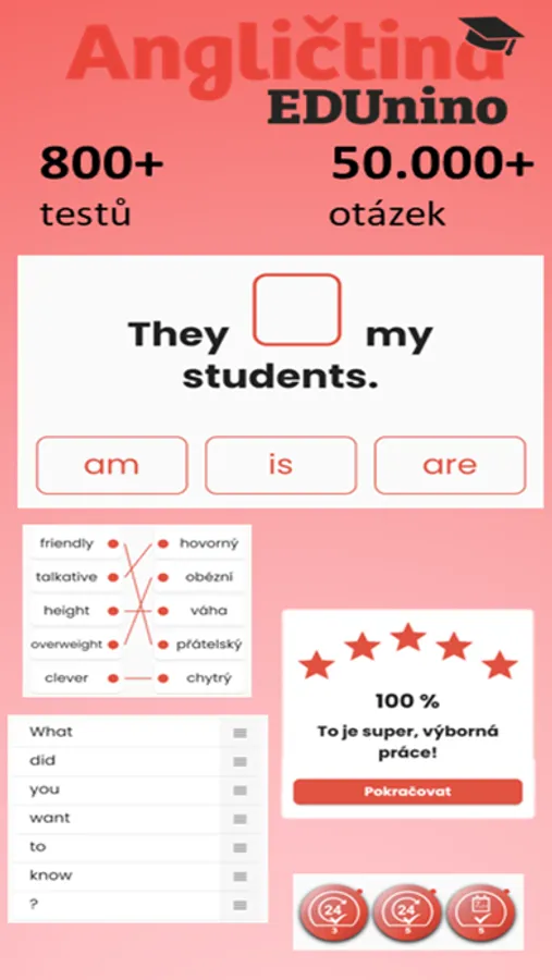 Aplikace automaticky opravuje chyby a ty tak velmi rychle a efektivně procvičíš danou látku.
