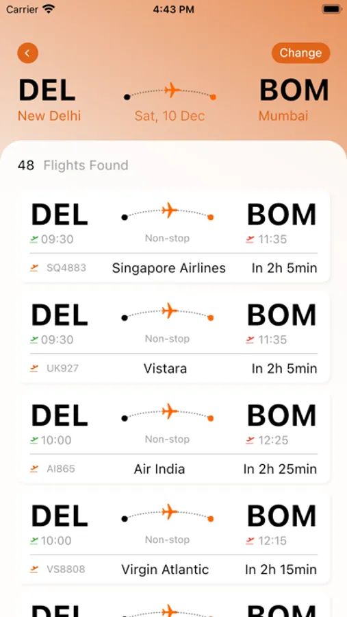 - Search for individual flights using flight number, or by airport