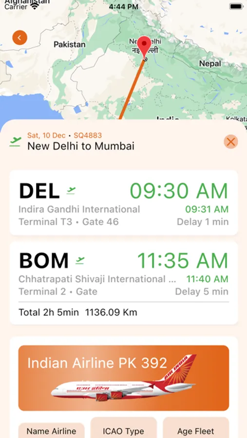 - Tap on a plane for flight details such as route, estimated time of arrival, the actual time of departure, aircraft type, speed, altitude, high-resolution photos of the actual aircraft & more