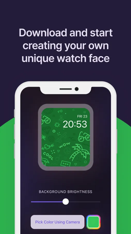 – Easily pick a color for your watch face using either the built-in camera on your device or a color picker tool
