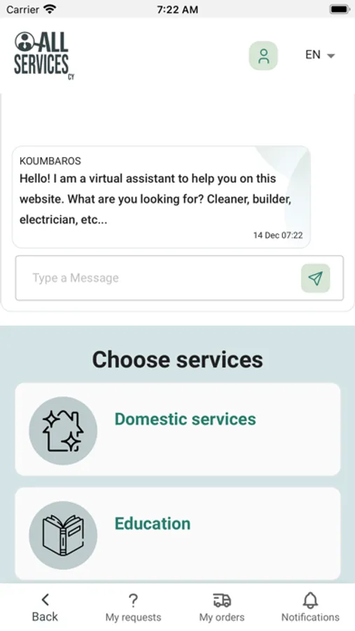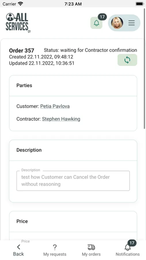 Browse the offers of the contractors and select the contractor or make request and wait answers from Contractors.
