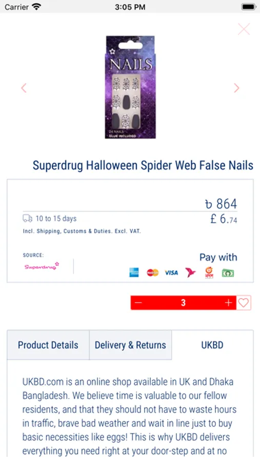 Ordering is super easy—just tap on what you want, add it to your bag and check out. We pack your order and shipment by air from London to Dhaka and deliver it straight to you in Bangladesh. Track your order in the USBD App. It’s super faster than you’d ever expect.