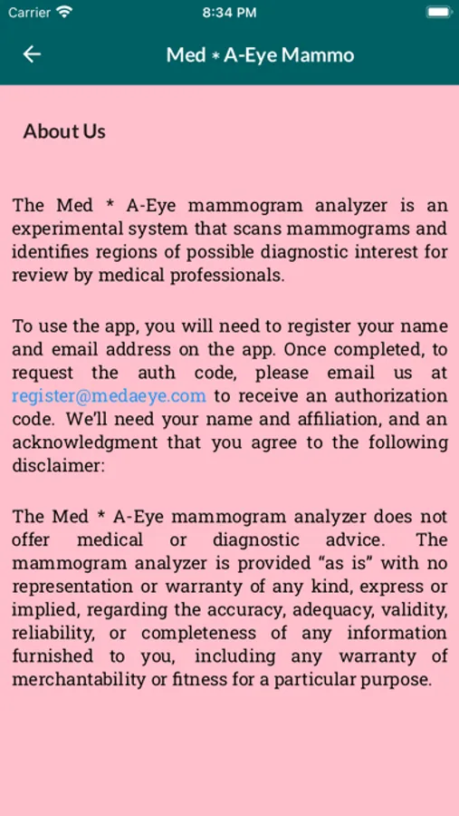 The Med * A-Eye mammogram analyzer does not offer medical or diagnostic advice.