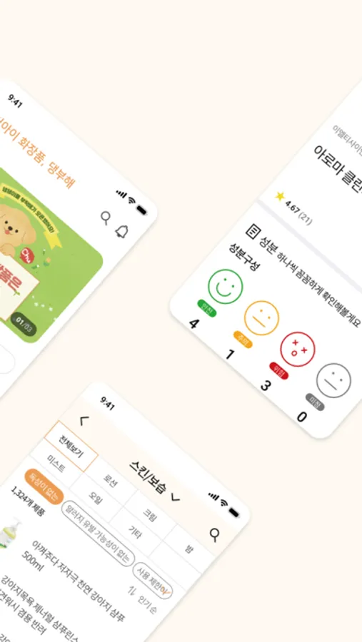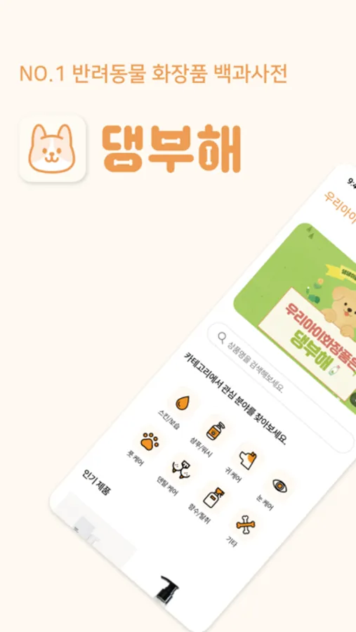 스킨/보습, 샴푸/워시, 귀 케어, 눈 케어, 풋 케어, 덴탈 케어, 향수/탈취, 기타 까지 우리 아이들이 사용하는 모든 종류의 제품을 담고 있어요. 건강한 반려생활을 위한 첫 걸음, 댕부해가 제공하는 성분 정보부터 시작하세요.