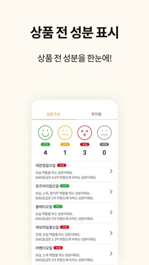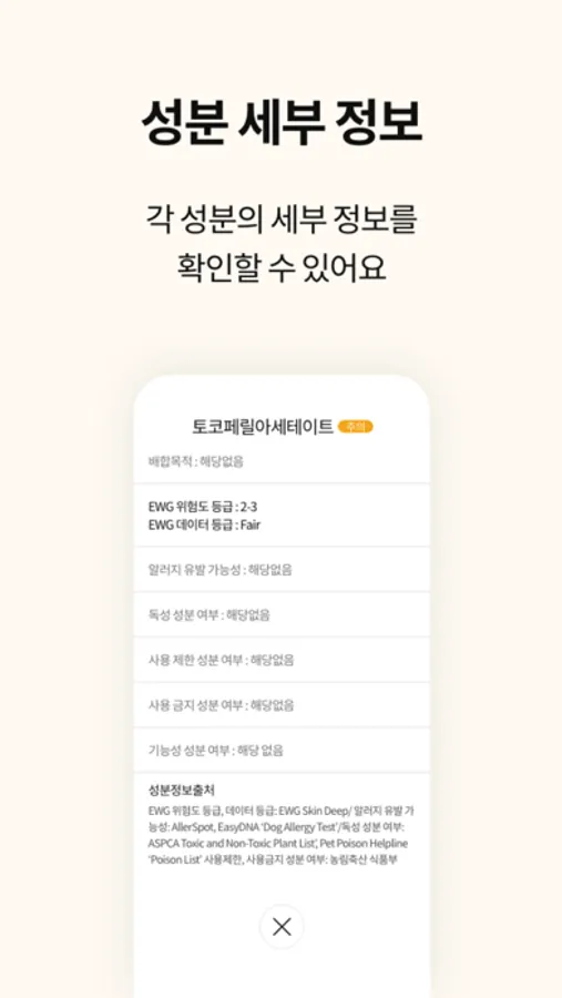 댕부해는 각 성분에 대한 배합목적, EWG 위험도/데이터등급, 알러지 유발 가능성, 독성 성분 여부, 사용제한/금지 성분 여부, 기능성 성분 여부에 대해 알기 쉽게 해석하여 제공해요.