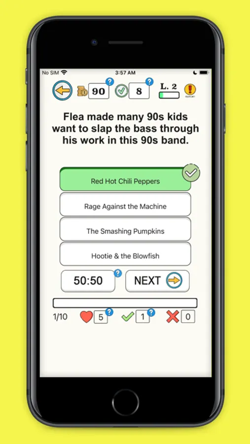 - 50-50 removes two wrong answers
