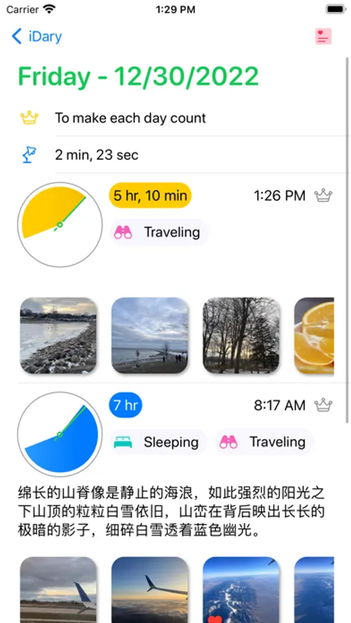 Record your daily actions with iDary! Leave your unique traces every day.