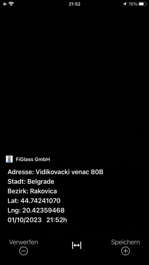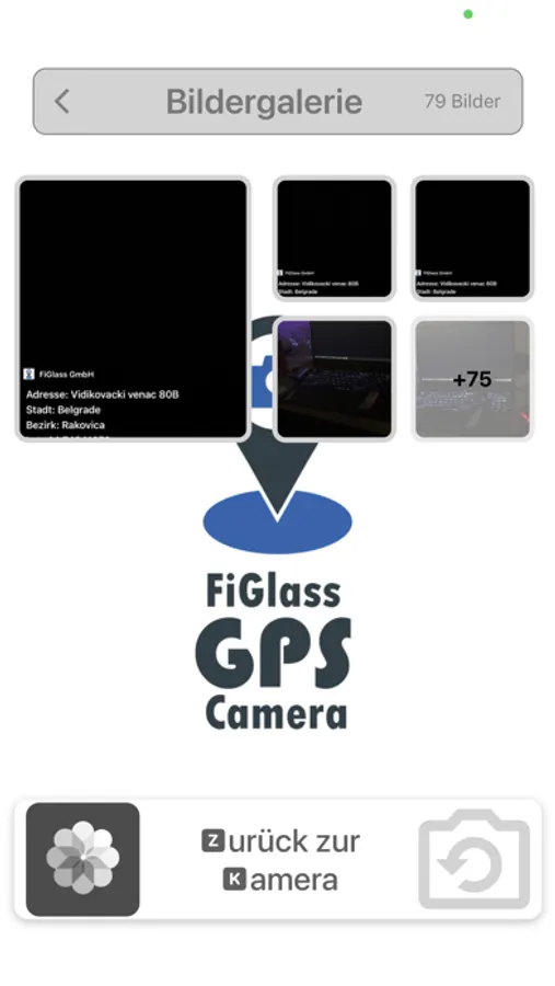 Verfolgen Sie mit der FiGlass GPS-Kamera Ihren aktuellen Standort zusammen mit Ihren aufgenommenen Anwendung.