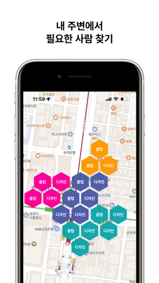 - 지도에 내 주위 사람들이 표시되어 내 주위에서도 사람을 찾을 수 있어요