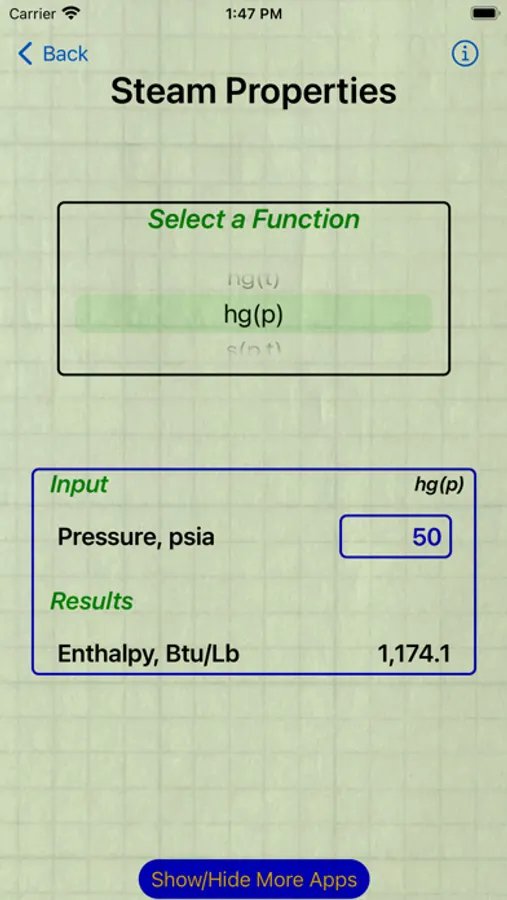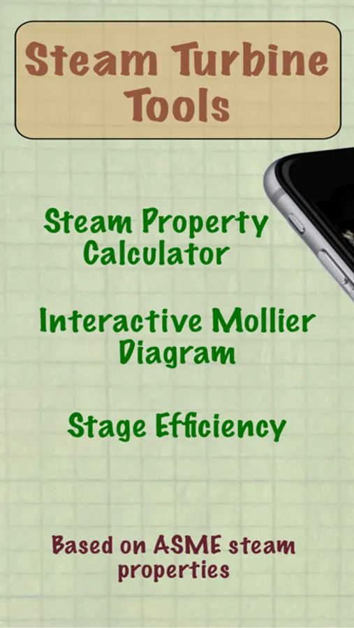 The app includes both an interactive graphical tool (based on the Mollier Diagram) and a tabular assessment tool. A full steam property calculator is also included. All steam properties are based on ASME steam tables. The current version of Steam Turbine Tools is in English units only.
