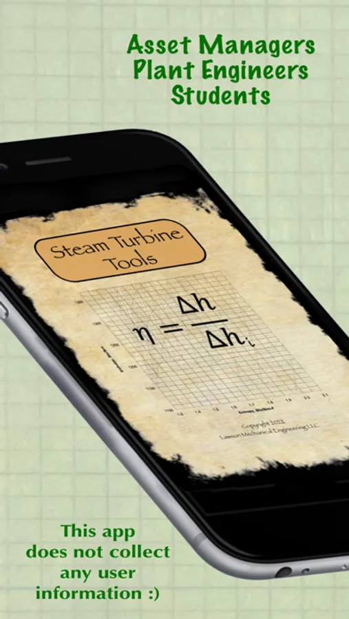 No data of any kind is collected by the Steam Turbine Tools app. Recommended for iPhone 11 and newer phones.