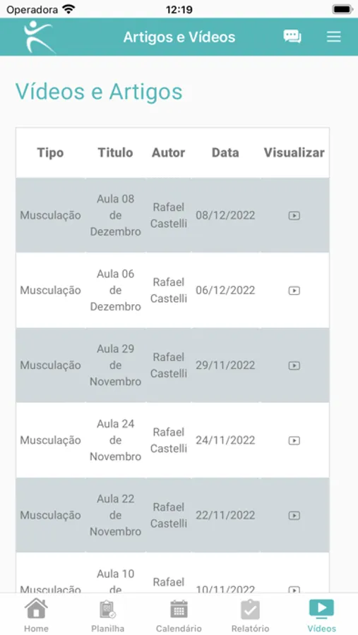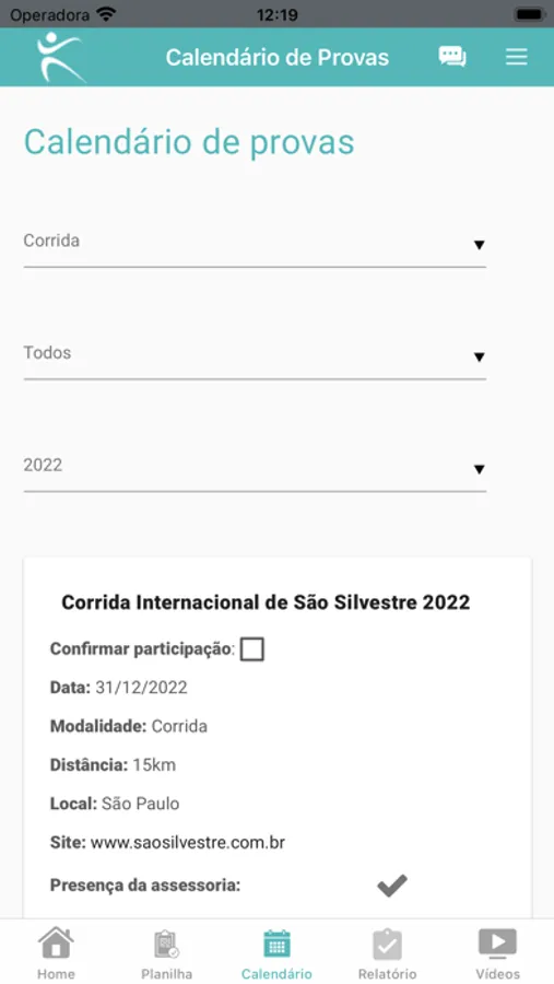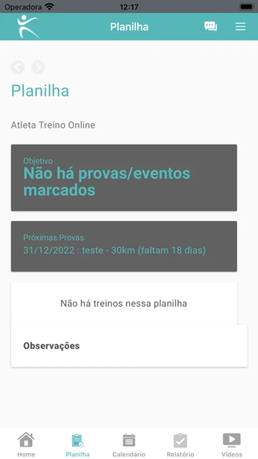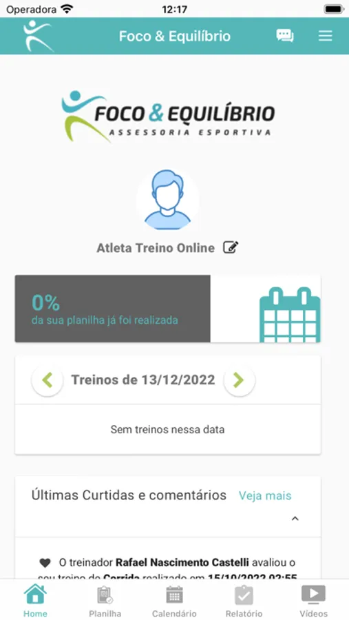 Aplicativo para os atletas da Assessoria Esportiva Foco & Equilíbrio que conta com as seguintes funcionalidades:
