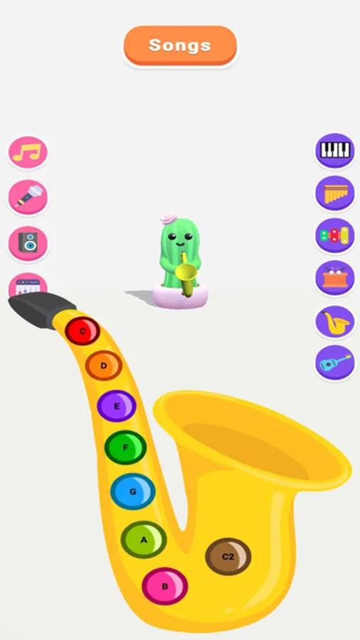 Change songs easily from the songs list and your Talking dancing cactus will guide you to play your favorite song correctly