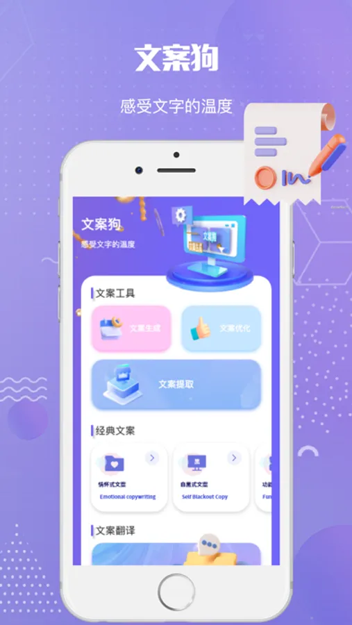 提供文案翻译、文案生成、文案优化等多种实用型工具,让你使用起来更便捷;