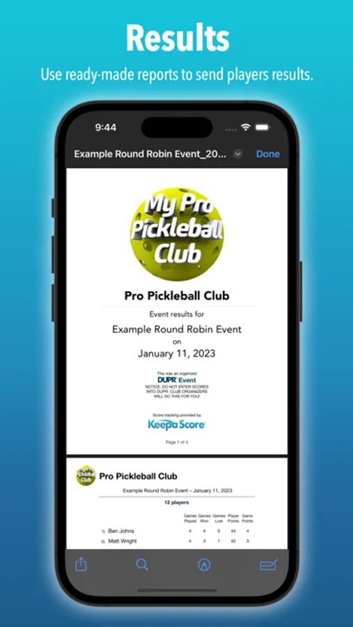 Stop using paper and spreadsheets to keep track of your pickleball event scores! KeepaScore can easily do it for you.