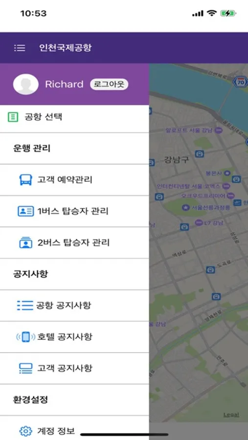 3. 공항, 호텔 등으로 부터 승객의 다양한 정보를 받고, 공지사항을 확인