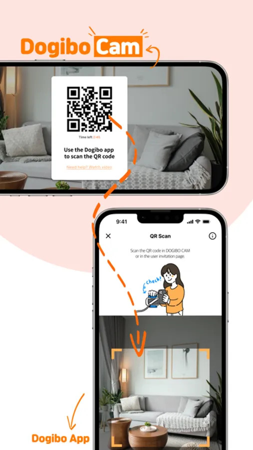 2. Install the "Dogibo Cam" app(with the blue icon) on your spare or old phone/tablet and connect it to your primary phone.