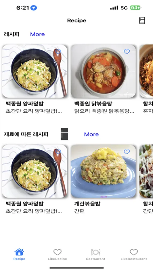 2.냉장고에 있는 재료 들로 레시피 추천 기능