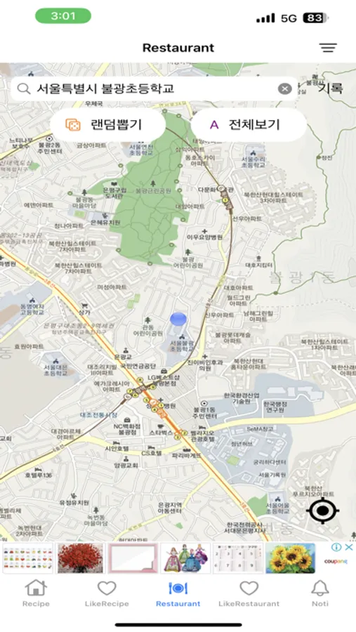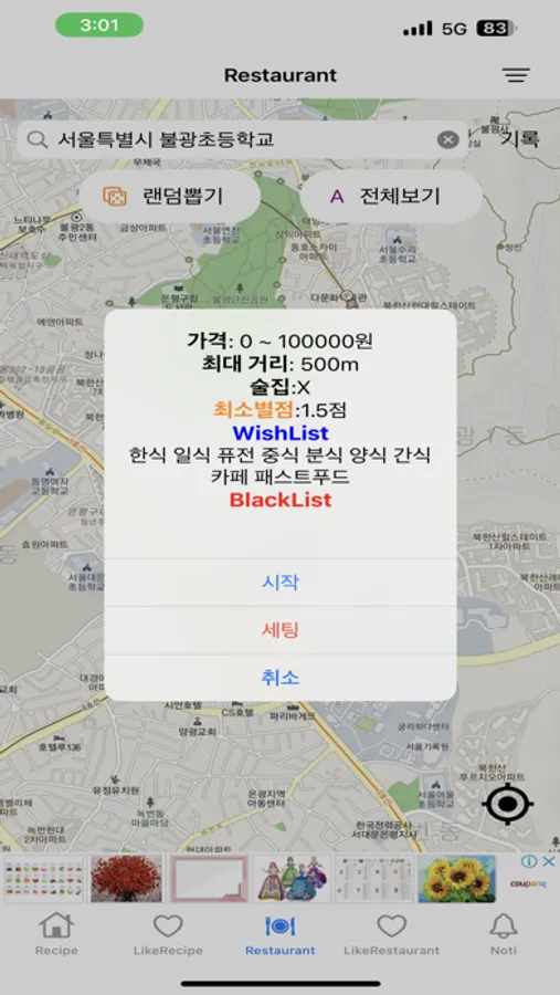 4.주변 음식점을 가격,거리에 따라 랜덤으로 추천 해주는 기능