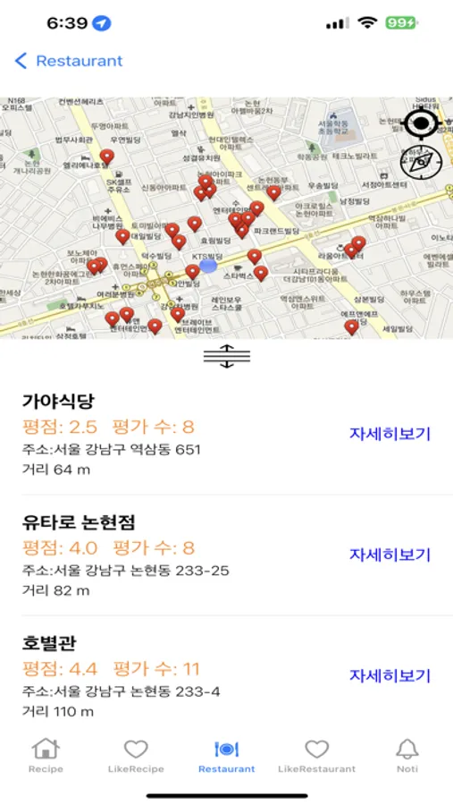 5.주변 음식점을 가격,거리,종류 에 따라 전체 검색 하는 기능