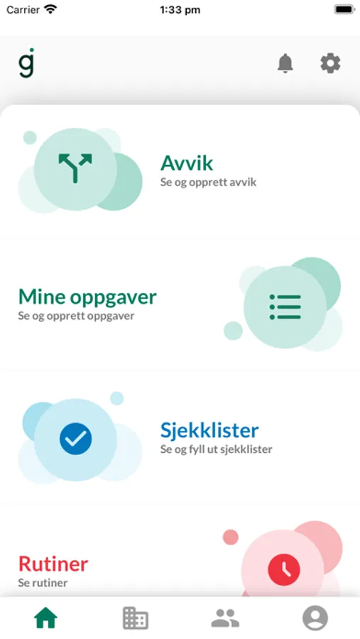 I denne appen blir deler av Grønn Jobb sitt HMS-system også tilgjengelig på mobil. Dere får varslinger direkte i mobilen når dere får nye oppgaver å følge opp, og kan også oppdatere de når de er utført. Dere kan også enkelt:
