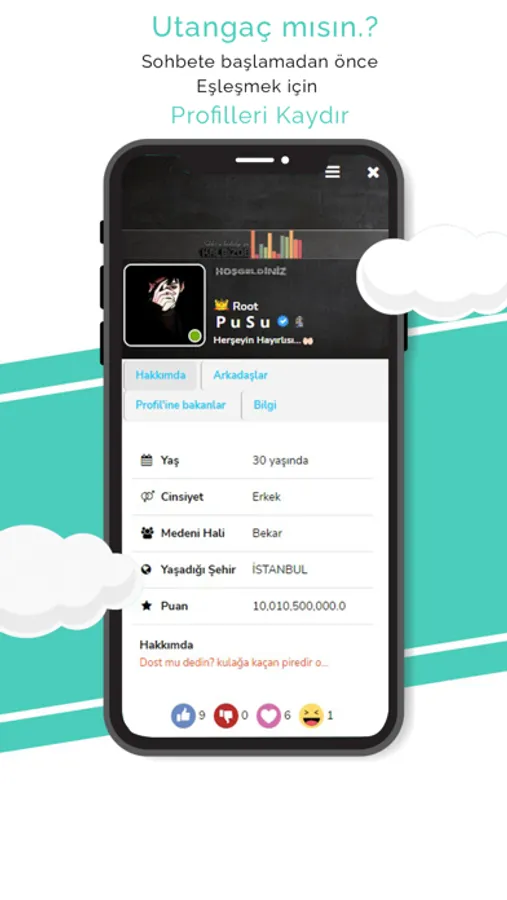 Sohbet topluluğumuz size başkaları ile iyi anlar paylaşma, birlikte müzik dinleme, çeşitli yarışmalar ve yeni arkadaşlıklar kurma imkanı sunar.
