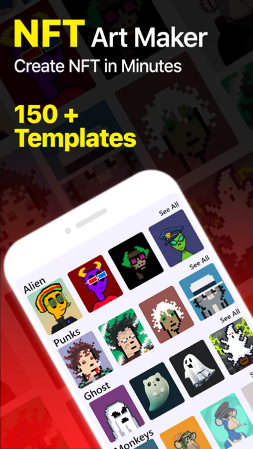 NFT art creator app has splendid NFT templates having different NFTs types like cartoons, vehicles, punks etc, which can be edited to create NFTs with editing features of NFT artwork.
