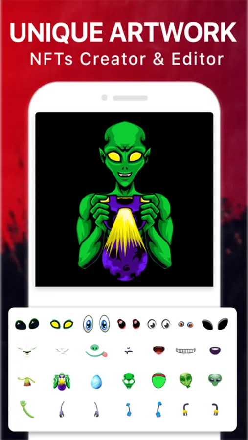 Crypto NFT art maker: NFT creator proficiently helps to create NFT crypto art, Which can later be published on blockchain network. NFT digital art creator designs alien and emoji stickers with abundant features of NFT art creator and maker. Pixel art NFT creator also edit NFT stickers available at NFT templates with NFT crypto art effects which make like real NFT stickers created by creative digital artist ready to publish on NFT marketplace.