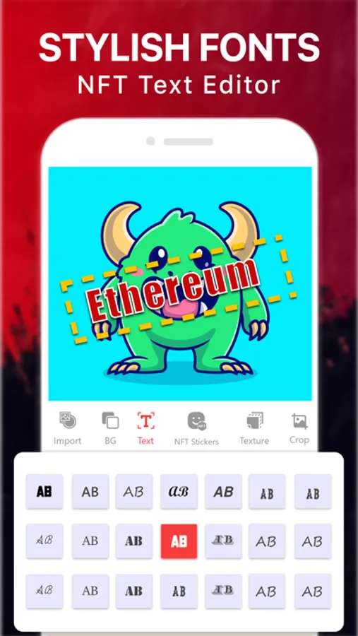 NFT creator and art maker tool create NFTs on choosing art style, add text, change font style, and background for creative digital arts. NFT art creator app creates NFT stickers with NFT photo filter available on NFT maker app. NFT is Non-Fungible Token, Create NFTs designed pictures, and add NFT stickers for photos to create demanded NFT artwork.