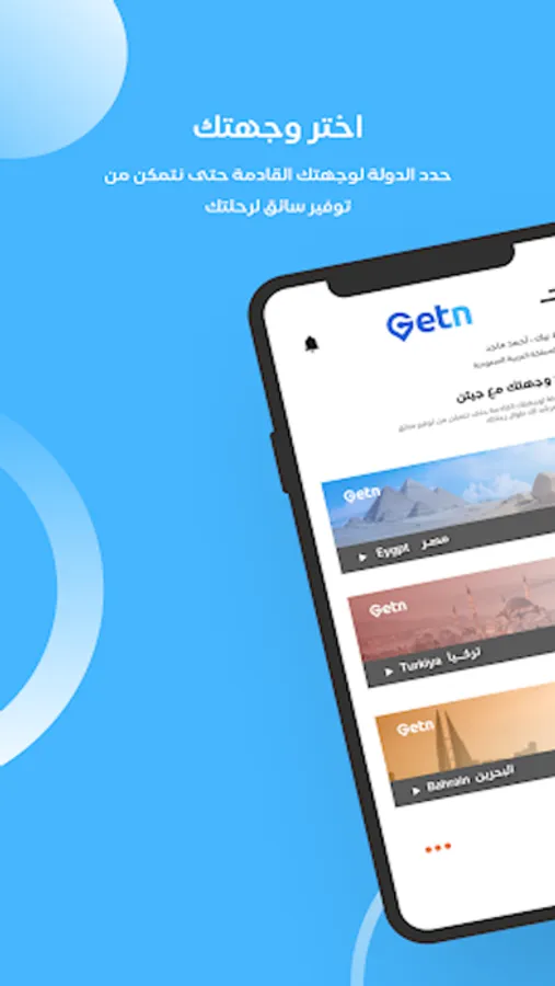 GetN is an application, provide trips for tourists and people who need trips between cities and to move in general from one place to another all the day.