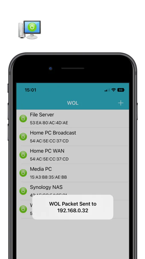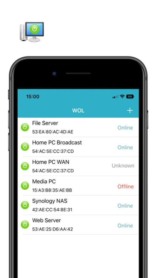 This app allows to wake up computers and other devices that support the WOL (Wake On LAN) standard. Most modern computers do support this, however, you may need to enable Wake-On-LAN in BIOS and sometimes in network card driver preferences. Although the app itself is very easy to use some networking knowledge may be required to set up your devices, especially if you are walking up over the Internet.
