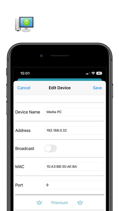 To wake up a computer on your local network, all you need to provide is your device's MAC address. The app will figure out the broadcast IP address for your local WiFi network and send WOL packet to all devices on the network. Obviously, your iPhone/iPad must be connected to the same local network as the device you are waking up.