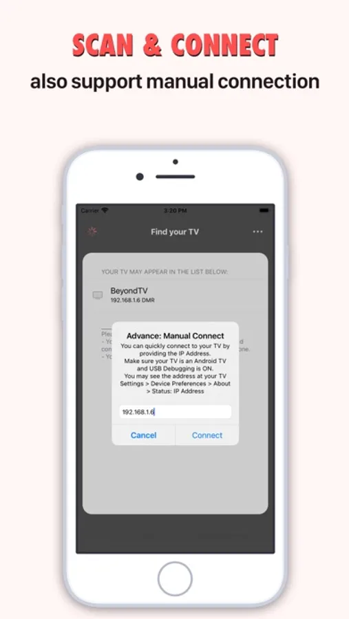 - Scan TVs on local network and connect automatically, but it also supports quick manual connection without scanning.