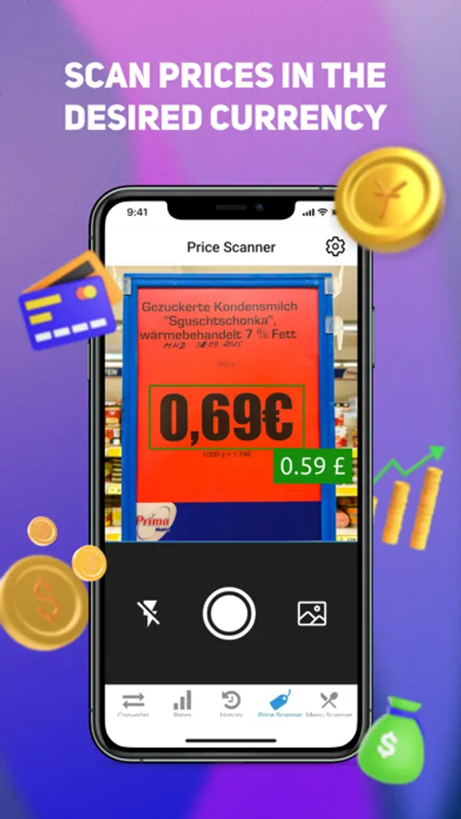 A simple and convenient CurCovn currency converter that can scan price tags in the store and convert to the desired currency