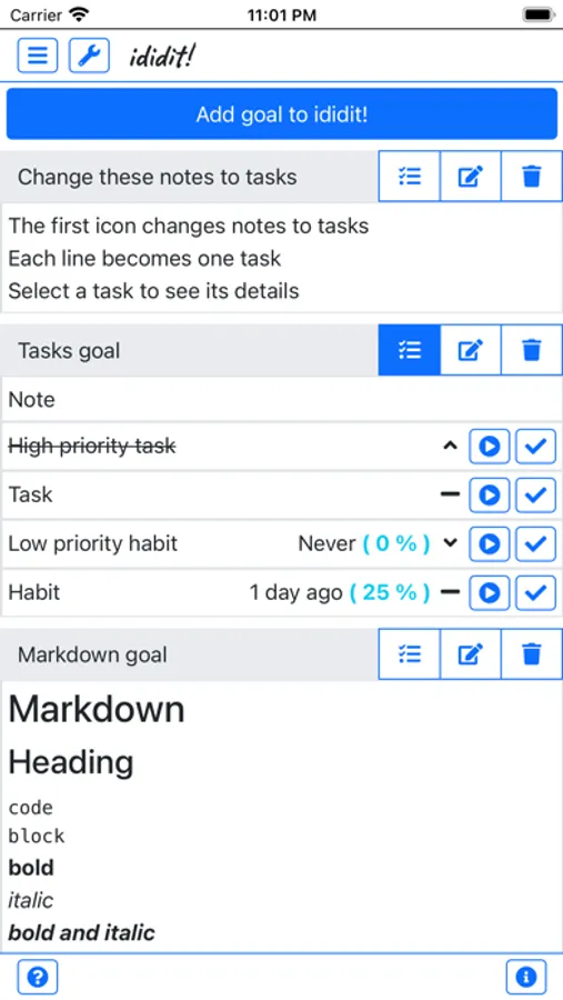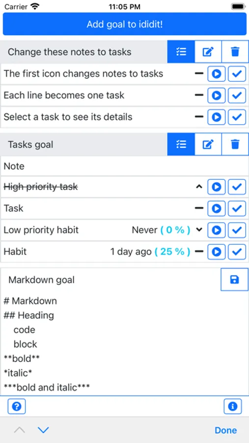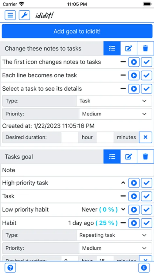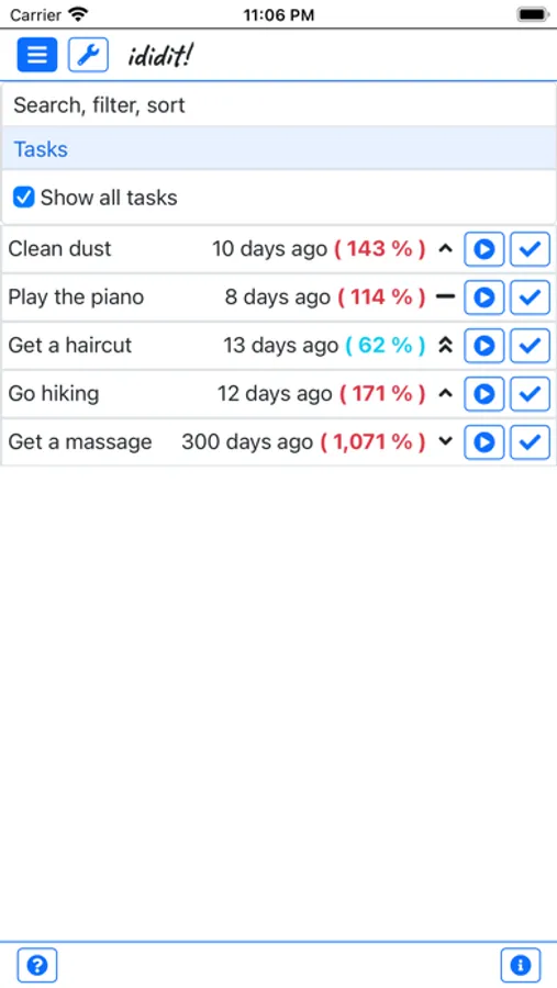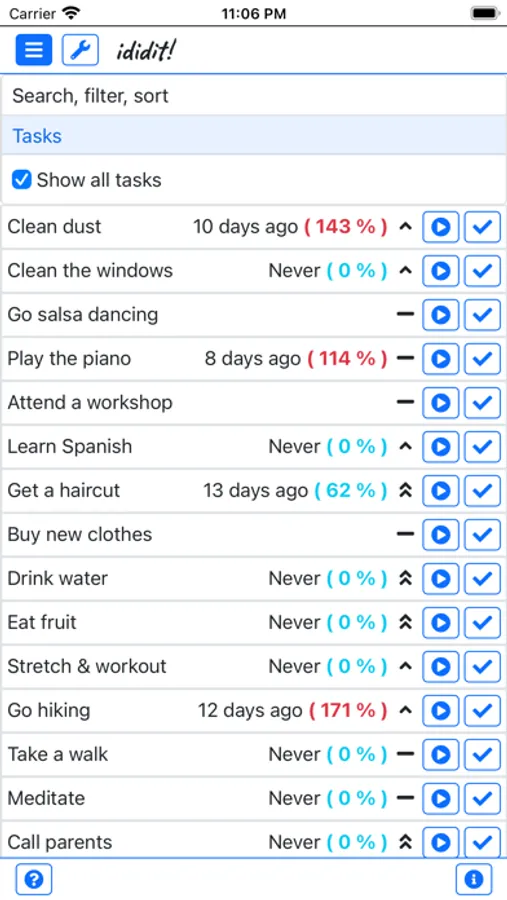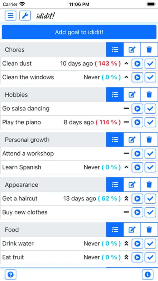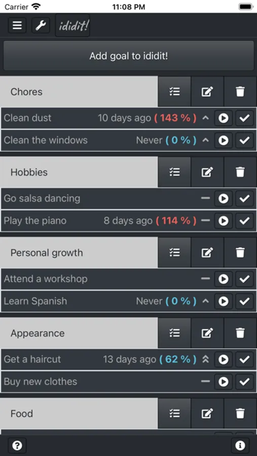 ididit! doesn't use a streak counter so you won't feel demotivated when you skip a habit once - you won't have to start your streak from zero.