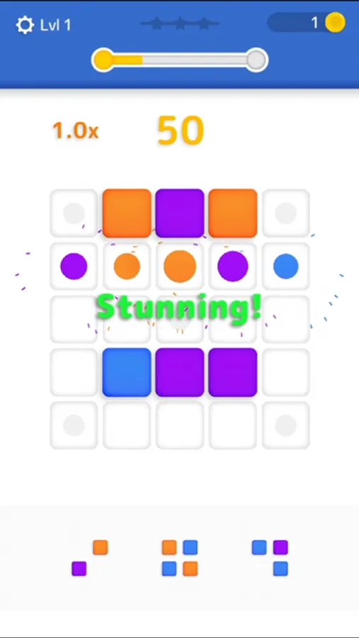 You can stack, rotate and place pieces beside each other to create matches and reach the target goal to clear each level.