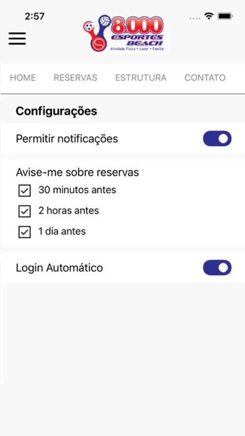 Confira pelo app nossas informações de estrutura, localização e contato com o centro esportivo.
