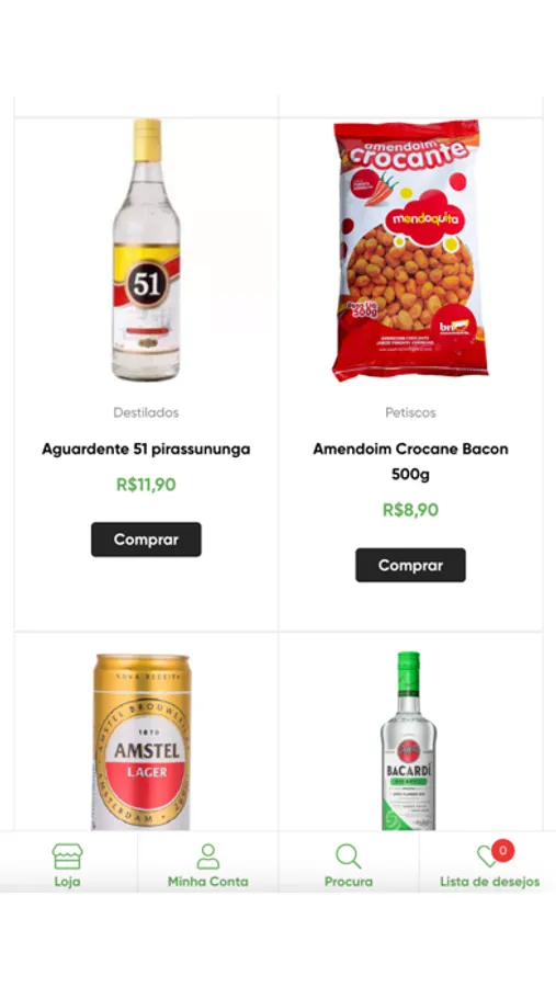 Compre bebidas, petiscos e muito mais. E ainda recebe em sua casa!