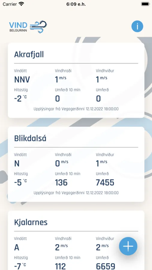 VindBelgurinn was created to provide a simple and accessible view of weather stations from the Icelandic Road and Coastal Administration (IRCA). It also provides basic information about road conditions pulled from their data.