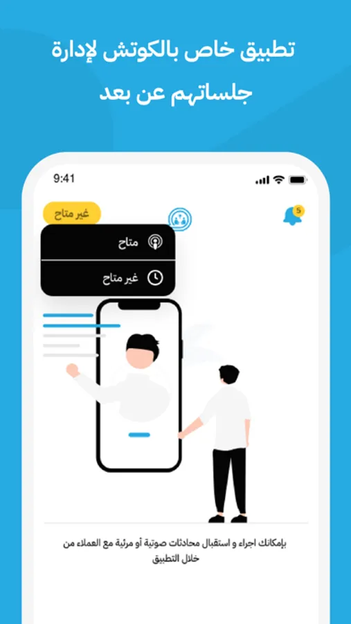 - بإمكانك إجراء أو استقبال محادثات صوتية أو مرئية مع العملاء من خلال التطبيق.